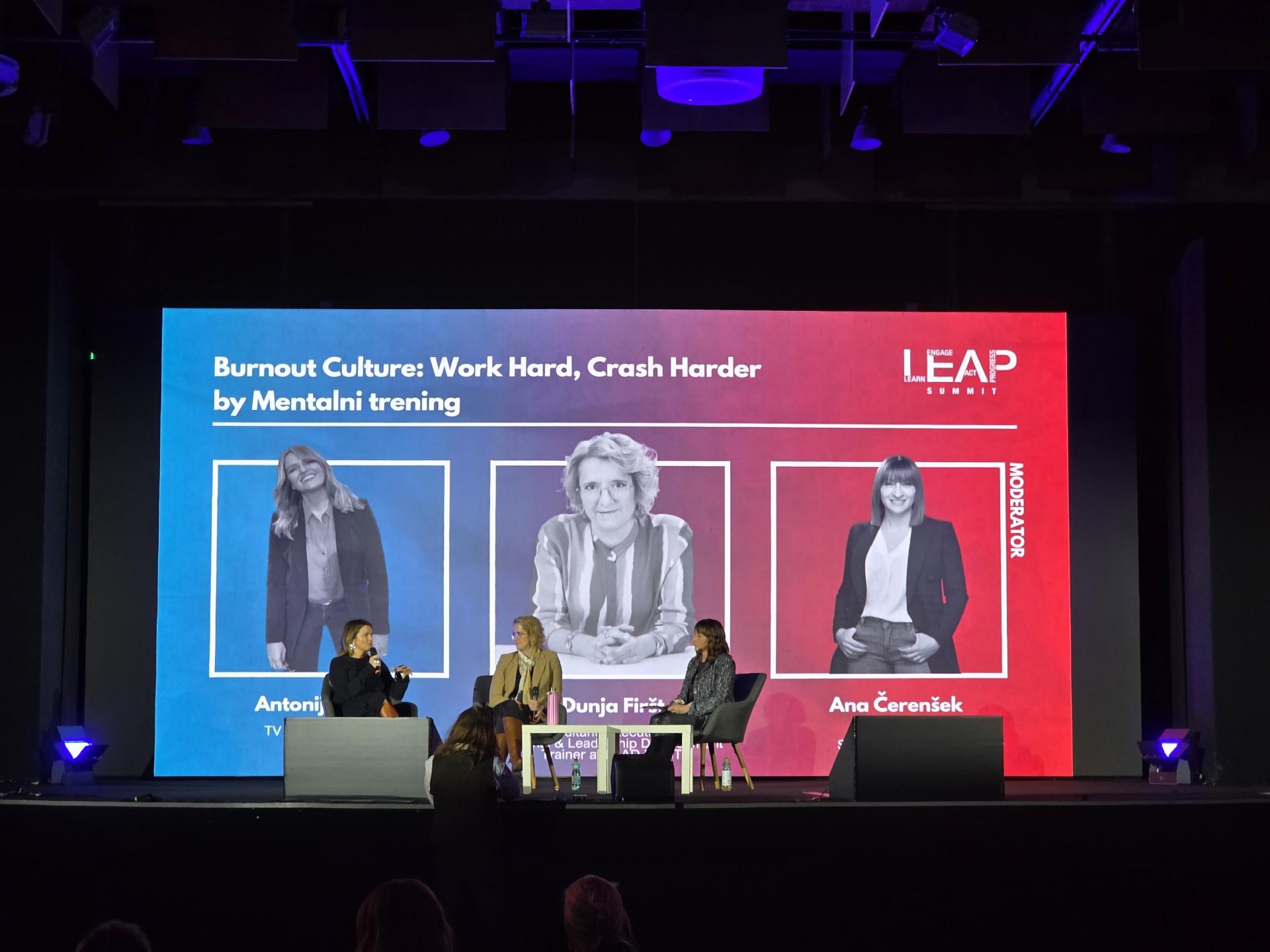 Posljednji panel nastavio se svojim naslovom na prethodni, a to je "Burnout Culture: Work Hard, Crash Harder". Gošće su bile Antonija Blaće, poznata tv voditeljica te Dunja Firšt koja se bavi poslovnim savjetovanjem. Firšt je istaknula da današnji rizik za ‘burnout‘ je mnogo veći zbog društvenih medija koji stvaraju lažne kriterije. Bitno je ostati fokusiran na sebe i svoje vrijednosti, a ako je teško shvatiti koje su to vlastite vrijednosti i fokus, potrebno je potražiti podršku, ali ljudsku, a ne umjetne inteligencije.