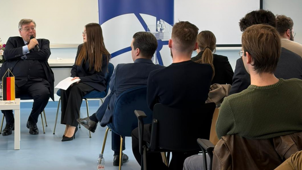 Razgovor s veleposlanikom omogućio je studentima i članovima akademske zajednice odgovore na niz aktualnih pitanja te obuhvatio teme vezane uz područja aktualnih geopolitičkih sukoba. Njemački veleposlanik naglasio je važnost suradnje koja predstavlja benefite za sve države kao i vjeru u mogućnost daljnjeg napretka i djelovanja u okviru međunarodnih organizacija kroz odnose utemeljene na poštivanju međunarodnog prava.
